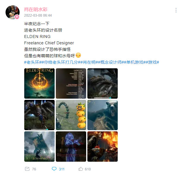设计《艾尔登法环》手指怪的带恶人找到了,熊怪、水母也出自他之手