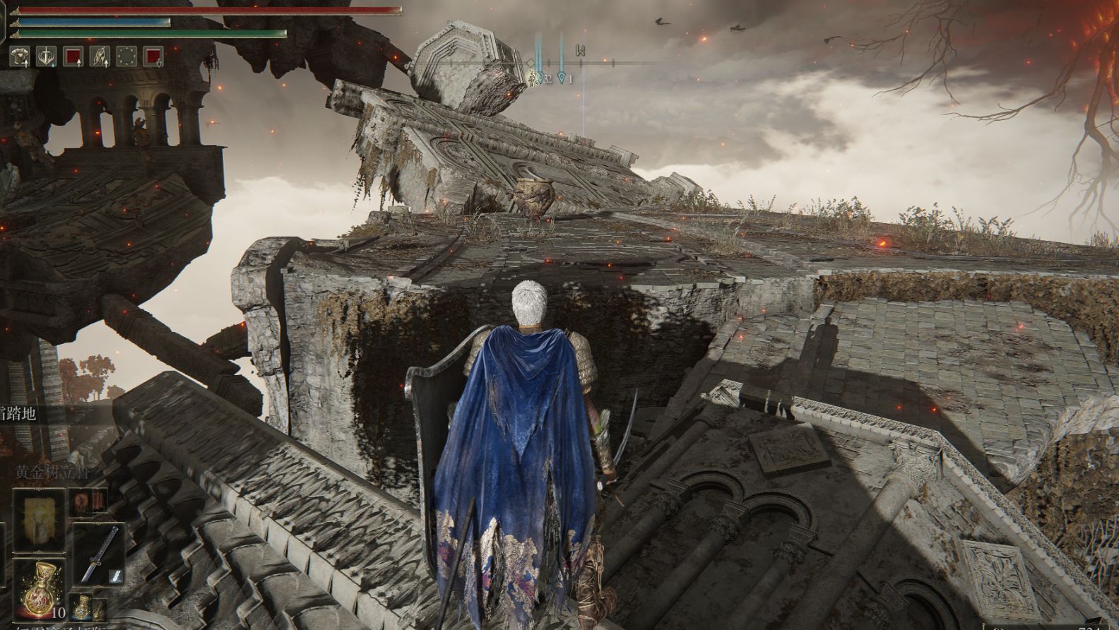 第五步:我们来到天空之城 法姆·亚兹拉。从龙教堂(升降机前)出门左转右转一路朝上走,原本雷龙的地方就是战士壶。