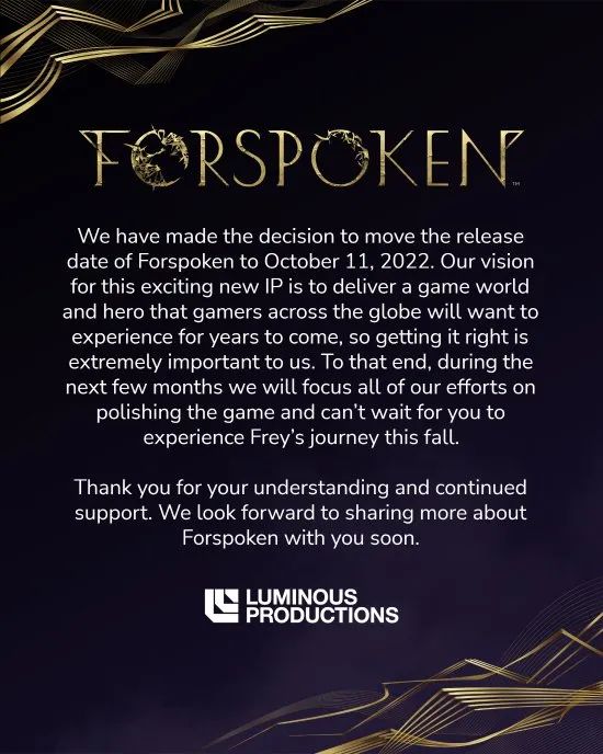 3、SE新作《FORSPOKEN》宣布跳票至10月11日