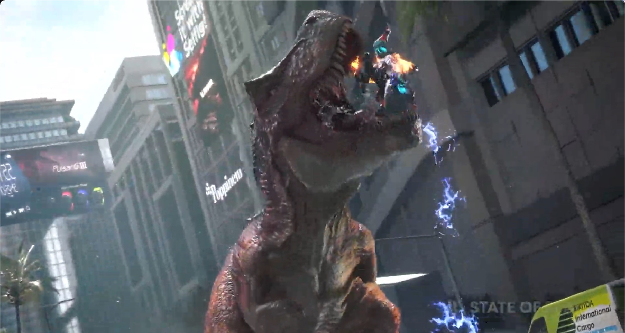 这就是前两天传的卡普空新IP作品,乍一看我以为是《恐龙危机》整新活,仔细一看啥也不是,属于多人合作游戏,靠玩家们分别组成两支队伍驾驶装甲和恐龙作战,最后活一支队伍。