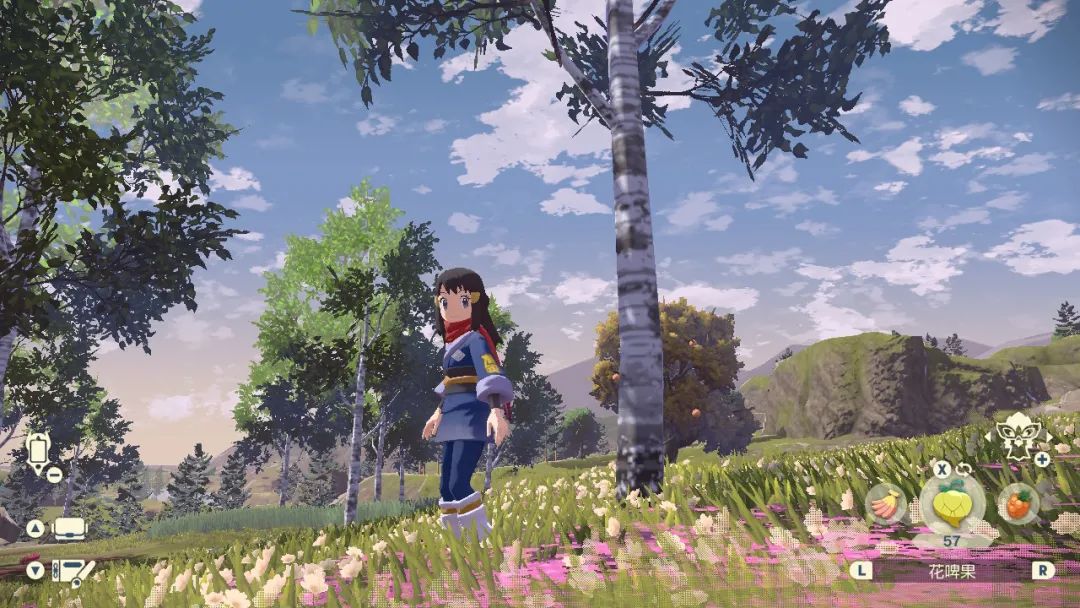 尽管在预告片里就多次见过,但亲自打开游戏时我还是很惊喜,全场景自由视角加上广阔的视距,毫不客气的说,宝可梦就**该是这个样子。尤其是对比剑盾的旷野地带,虽然都是自由视角,但传阿无论是视距还是画面的精细度都有很大改观,尤其是站在山上远眺洗翠地区,这是系列此前难有的画面体验。
