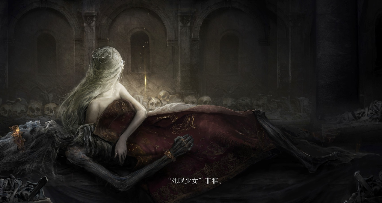 之后再次坐赐福,来回对话,死眠少女就会睡着,我们接触她的梦境,会见到一个该支线的最终boss死龙,击败后死眠少女身上就会多出一个新的卢恩