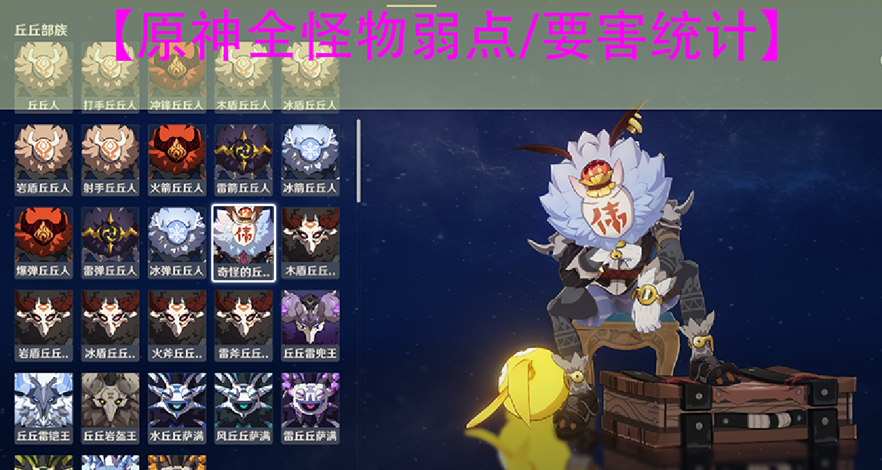 接下来会按照原神图鉴·生物志里的分类,对原神所有怪物的弱点一一说明。