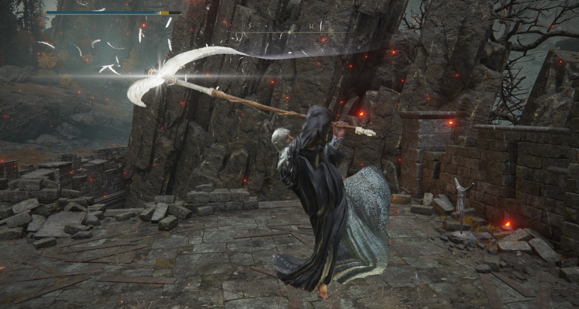 6 软鞭剑 卡利亚城塞到达罗蕾塔BOSS门前右拐藏着个门,过会一直往下跳只到返回卡利亚城塞上的城墙上捡取