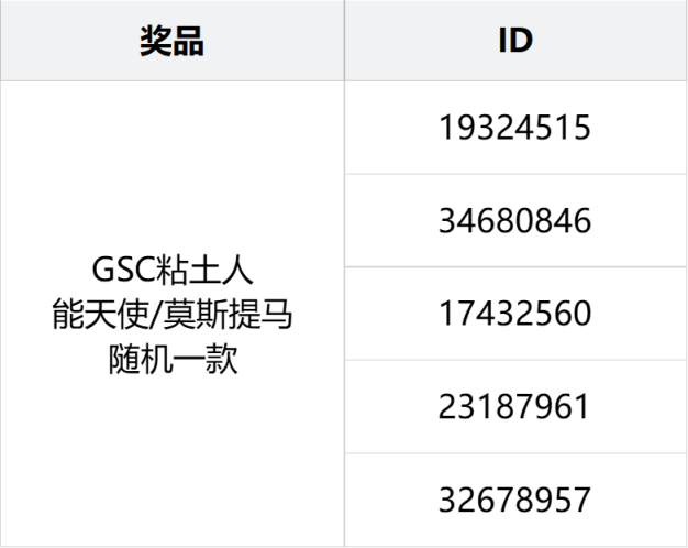 二等奖(5名):GSC粘土人 能天使/莫斯提马 随机一款