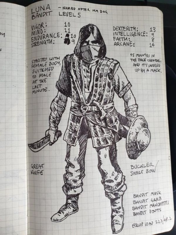 Ste Pickford绘制了一系列精美的《艾尔登法环》探险过程,记录了角色的属性和统计数据,开放地图Limgrave、一些NPC的信息。插图对每个敌人、BOSS、地标、盟友都进行了标注。