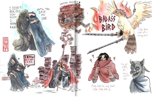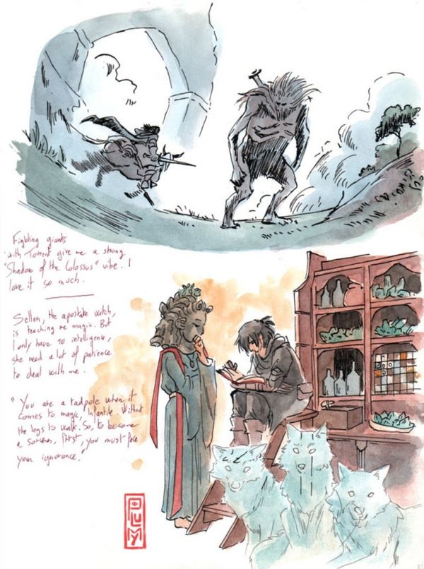 玩家Plumy用全彩的方式记录了《艾尔登法环》NPC与其的对话内容,整个本子充满异世界美的感觉。