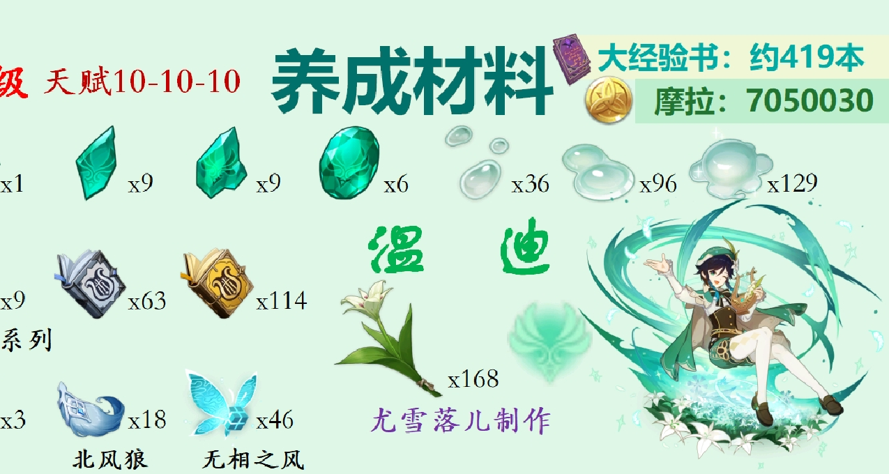 突破材料图是按照90级,天赋10-10-10制作的,大家可以根据上图,结合自身情况,合理加减。#原神2.5版本创作者征集活动#