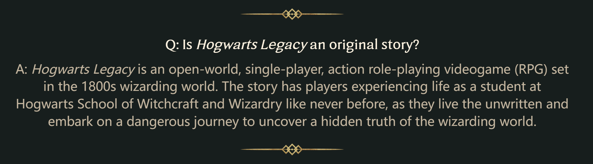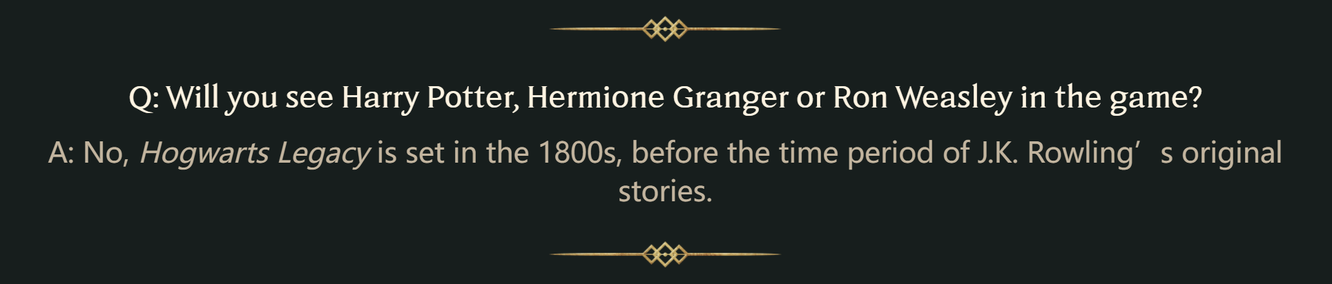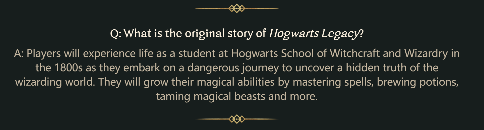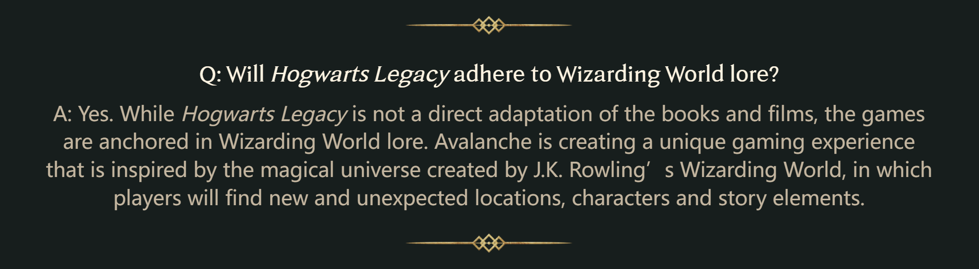 问题:【霍格沃茨:遗产】会忠于魔法世界的设定吗?
