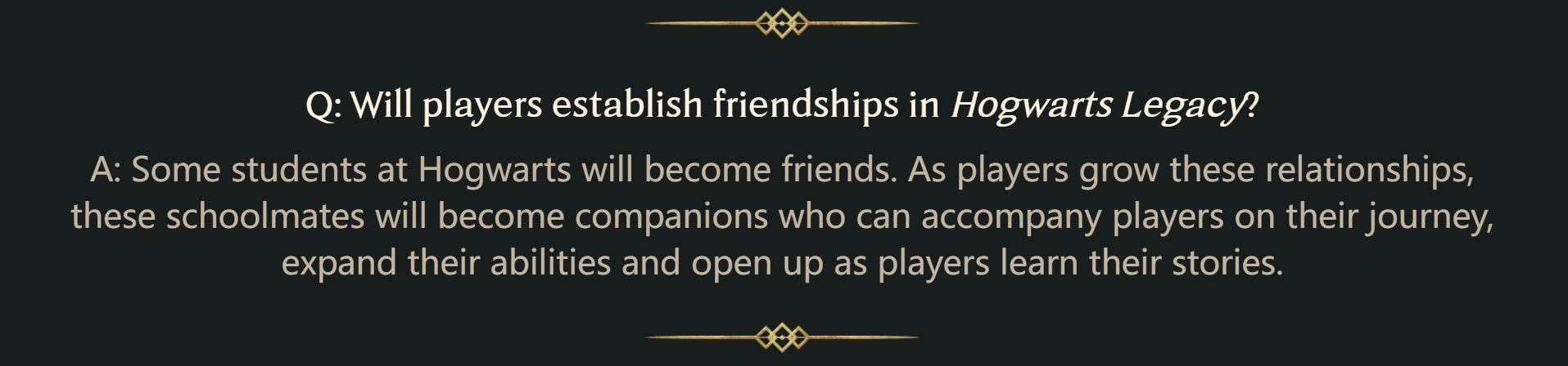 问题:玩家会在【霍格沃茨:遗产】中建立友谊吗?