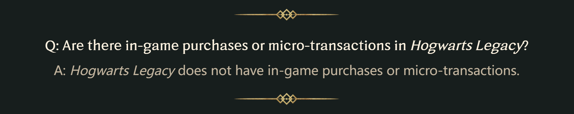 问题:【霍格沃茨:遗产】是否有游戏内购买或微交易系统?