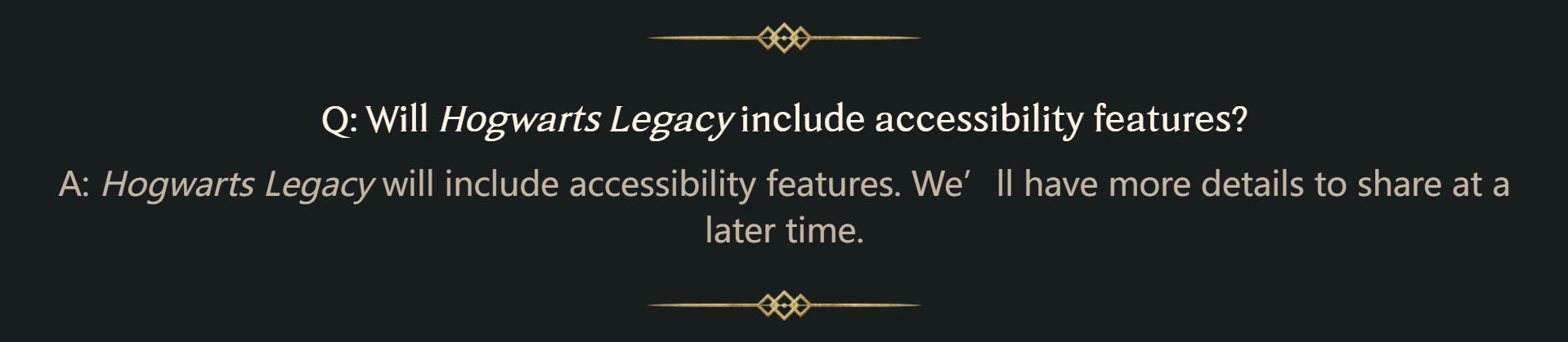 回答:【霍格沃茨:遗产】会包含无障碍功能。我们稍后会分享更多细节。