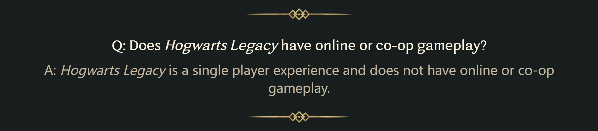 问题:【霍格沃茨:遗产】有线上或合作游戏吗?