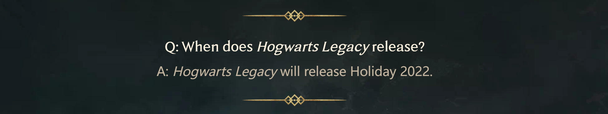 回答:【霍格沃茨:遗产】将于 2022 年假期发行。