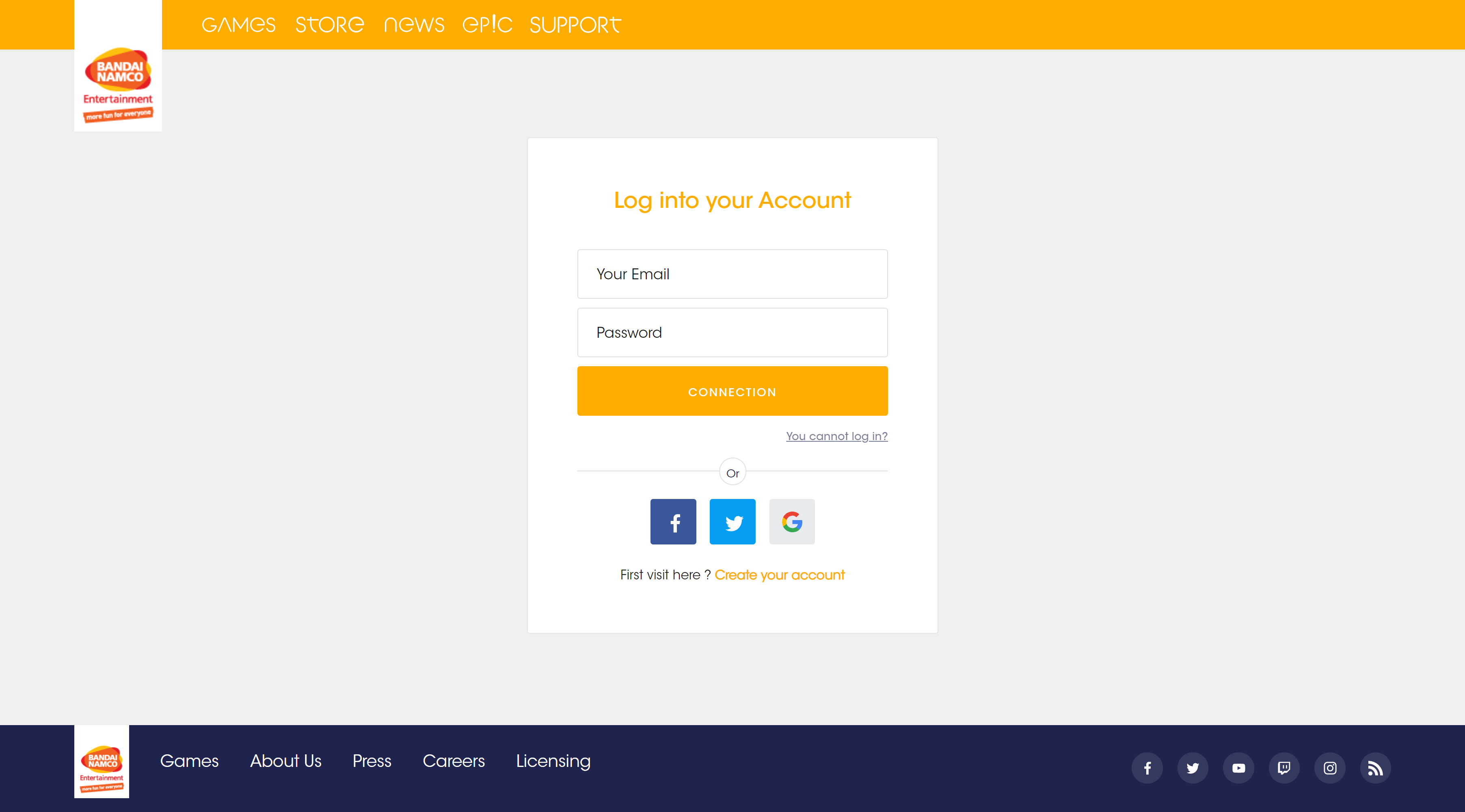 1. 注册/登陆账号:https://login.bandainamcoent.eu/login