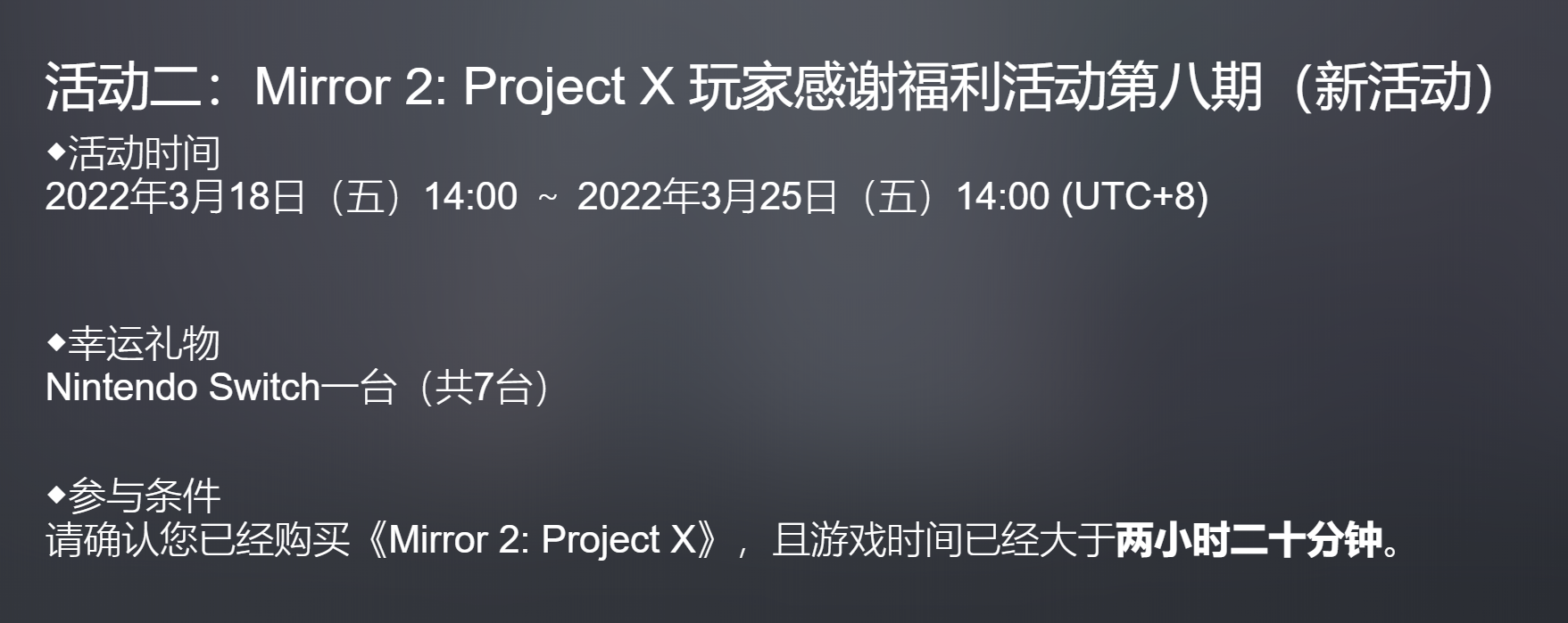 【Mirror2】送Key+抽Switch活动第八期 ;