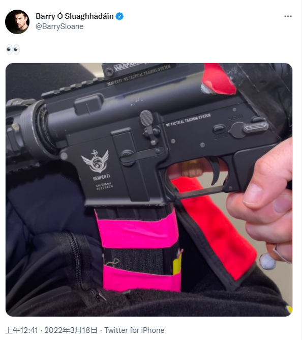 斯隆的帖子展示了一把道具枪,其顶部似乎标有“战争”标签,上面覆盖着粉红色和红色的胶带,用于动作捕捉,还有一些其他标记,似乎都与《使命召唤》相关。
