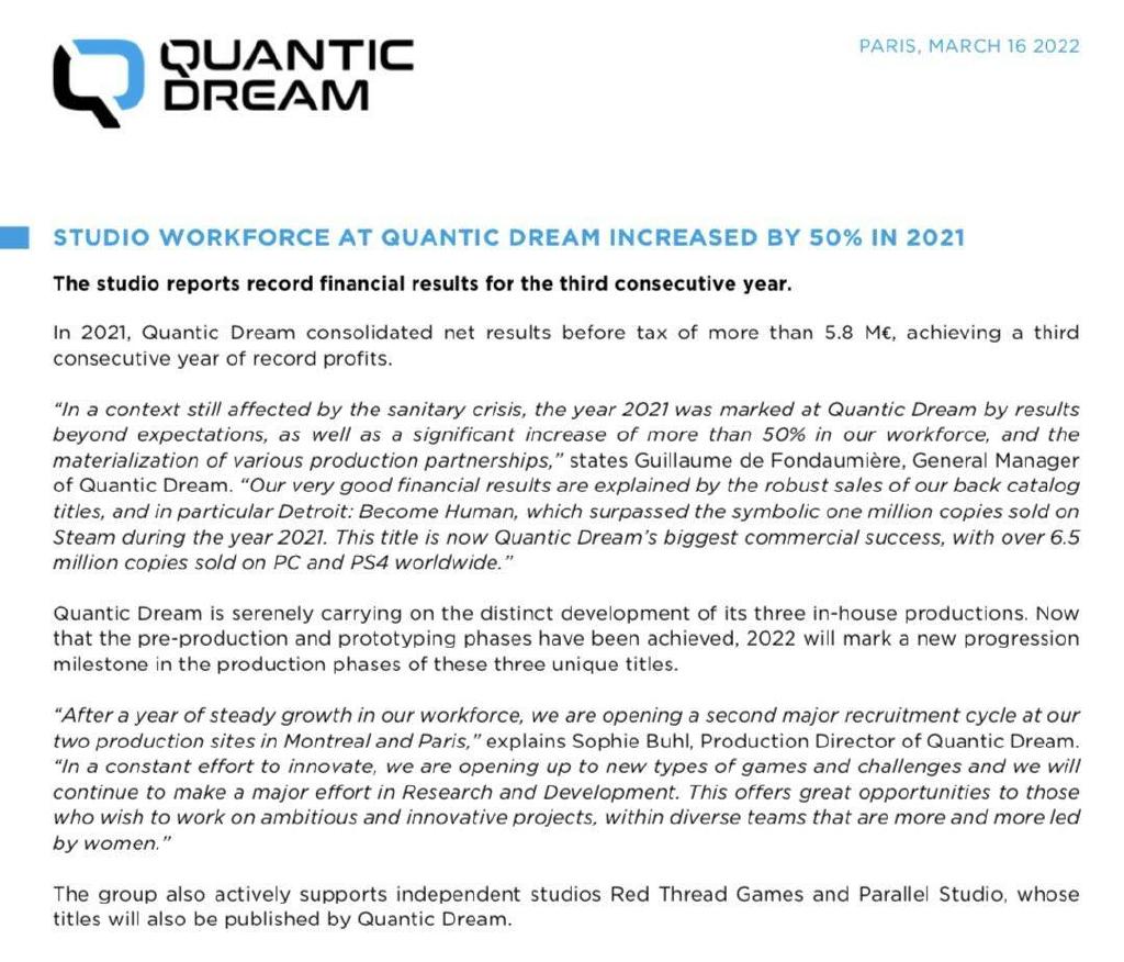 《底特律:化身为人》是Quantic Dream开发的一款以仿生人为题材的剧情互动电影游戏。开发商宣布,该游戏的销量已经突破650万,虽不及大部分3A游戏,但在电影式游戏中算是名列前茅的。