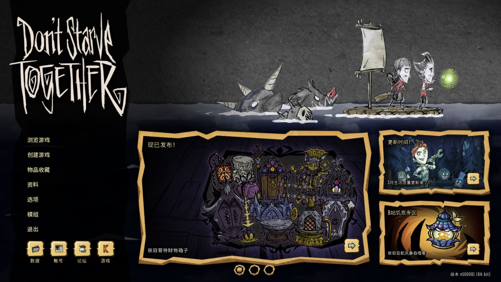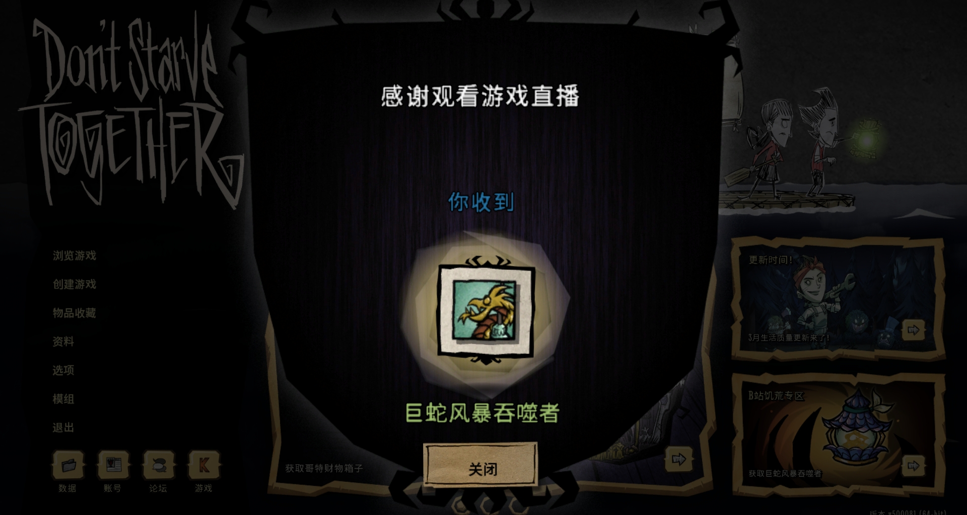 2、打开饥荒联机版,主页右下角有活动,点击进入