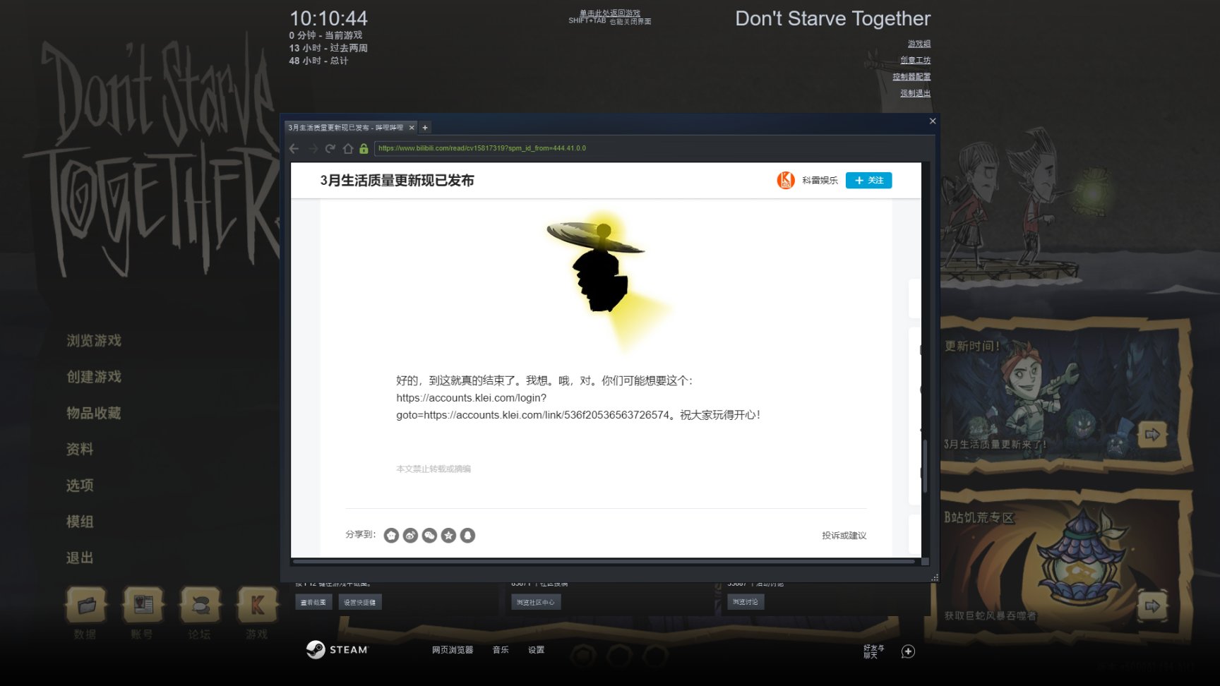 3、将文章划到最下面,官方给出了活动地址,复制粘贴到浏览器进入(steam太慢)