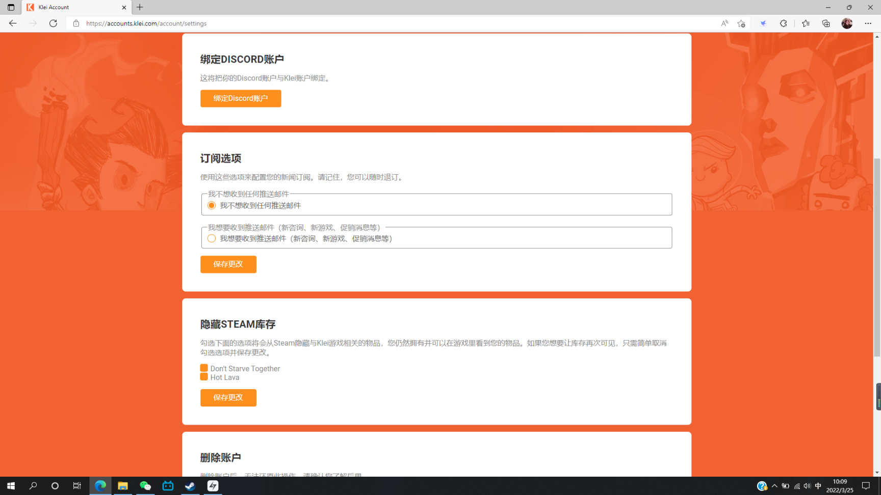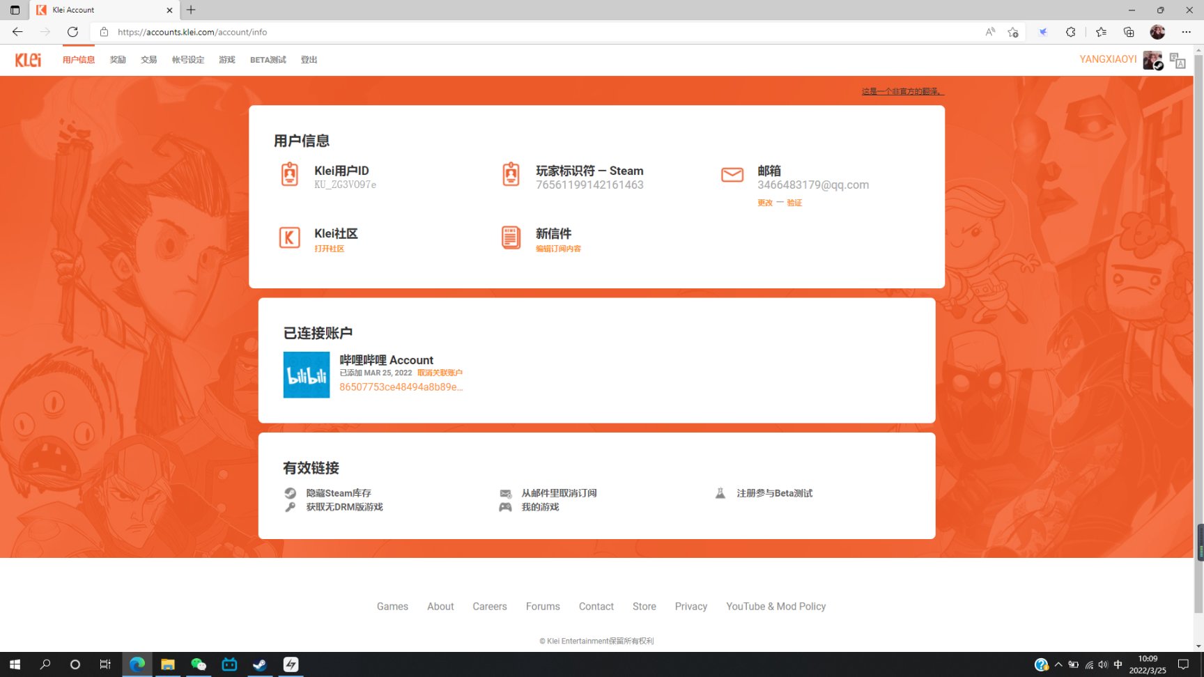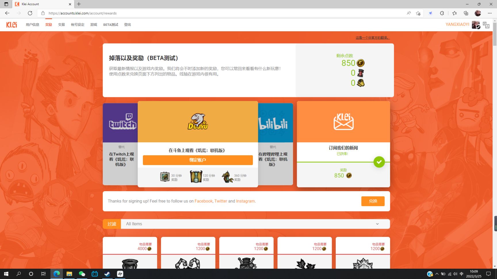 在上述klei官网中点击账号设定一栏,订阅选项中选择第二项,返回奖励即可领取850klei点数