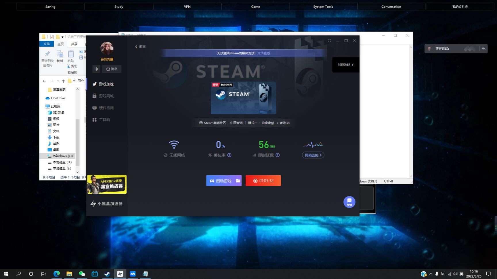 1、加速器加速steam(全程不关)