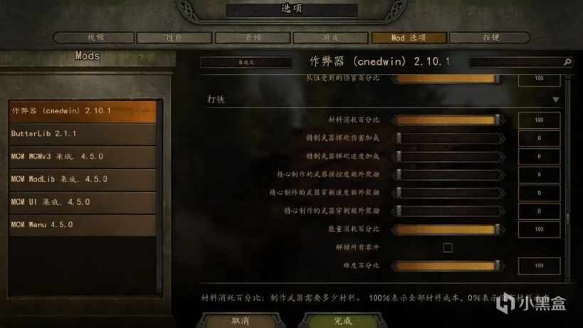 玩家可以修改有关打铁的收益、以及耗材率。