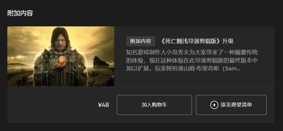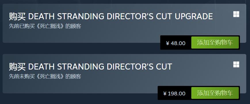 Steam与Epic的老玩家,均可仅花48元进行升级;而对于尚未在PC买过《死亡搁浅》的新玩家,目前能且只能花198元(Epic暂时为209元)来获取这部游戏。
