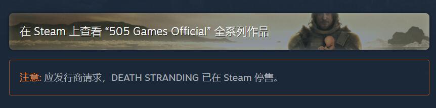 目前在Steam上,《死亡搁浅》原版“应发行商请求,DEATH STRANDING 已在 Steam 停售。”而在Epic上,则直接搜不到《死亡搁浅》原版的页面。