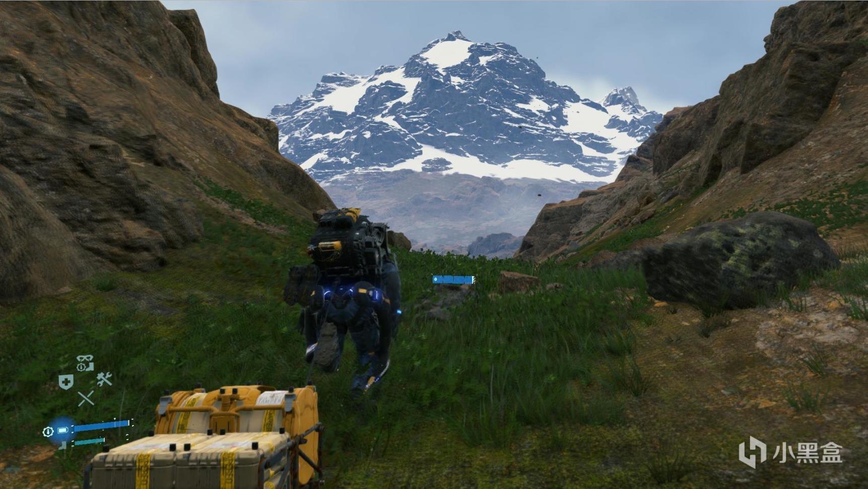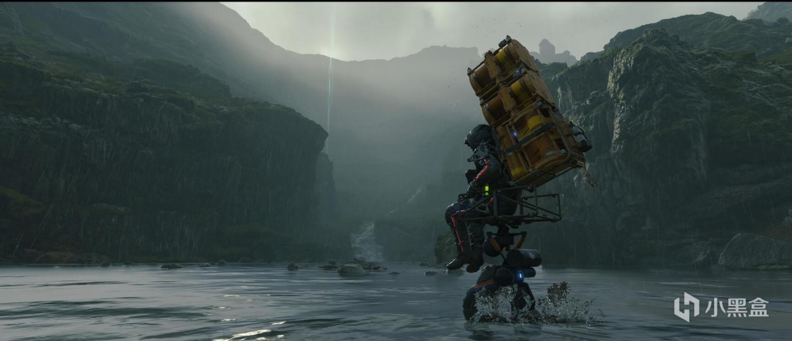 在《死亡搁浅》中,“平衡”这一点的重要性与物理表现可能被放大到了近乎夸张的地步,如果我们离开扫描为绿色的平坦地面,在黄色乃至于红色的点位上行进时,任何一点方向上的改变都会有如《极限竞速:地平线》中的赛车偏离了跑道,会感受到十足的“失控”感,而这种失控感,会随着身上所背负的货物的重量的增多与体积的增大更加明显——在第一章我们需要运送布里吉特总统的遗体去火化时,和序章中作为教学的“健脑药”配送作为对比,就可以很明显的感受到,来自于体积与重量的“存在感”。肩上包裹的重量,不仅仅在于物理,更加在于责任感。