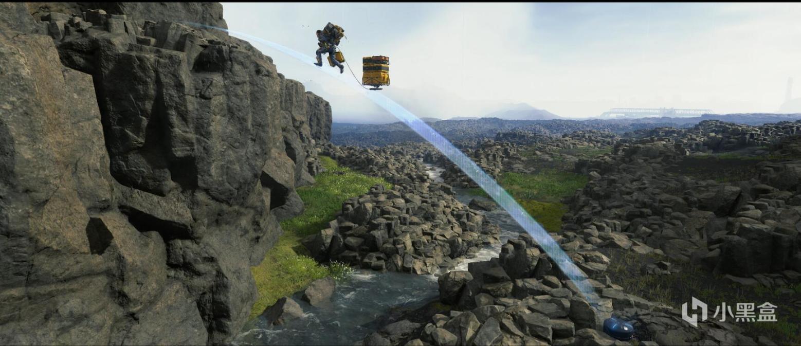 于是再一次踏上火化遗体的旅程时,我们所面对的除了对于BT的恐惧,还有想要挽回一切的心情。由于车辆可以行进的路线已经被上一次的爆炸损毁,这一次我们需要徒步前进,在跨越河流的关键地点,我们可以看到伊戈尔为我们留下的梯子,在攀上悬崖的关键地点,我们可以看到伊戈尔为我们留下的绳子——在第一次游玩《死亡搁浅》时,我并没有注意到这些细节,但在这次重新开始的连接旅程中,我才第一次感受到,来自于“连接”的温度(下一节的小标题,但为了叙事的逻辑性没法完美的衔接上了)。