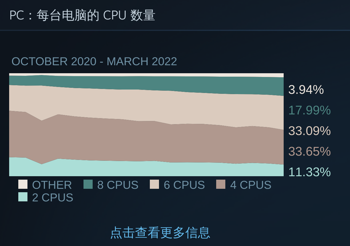 今日Steam官方公布了2022年3月Steam硬件和软件调查报告,从显卡、处理器、操作系统等各品牌和型号的占比展示了当前Steam玩家的整体情况,以下为本月报告详情。