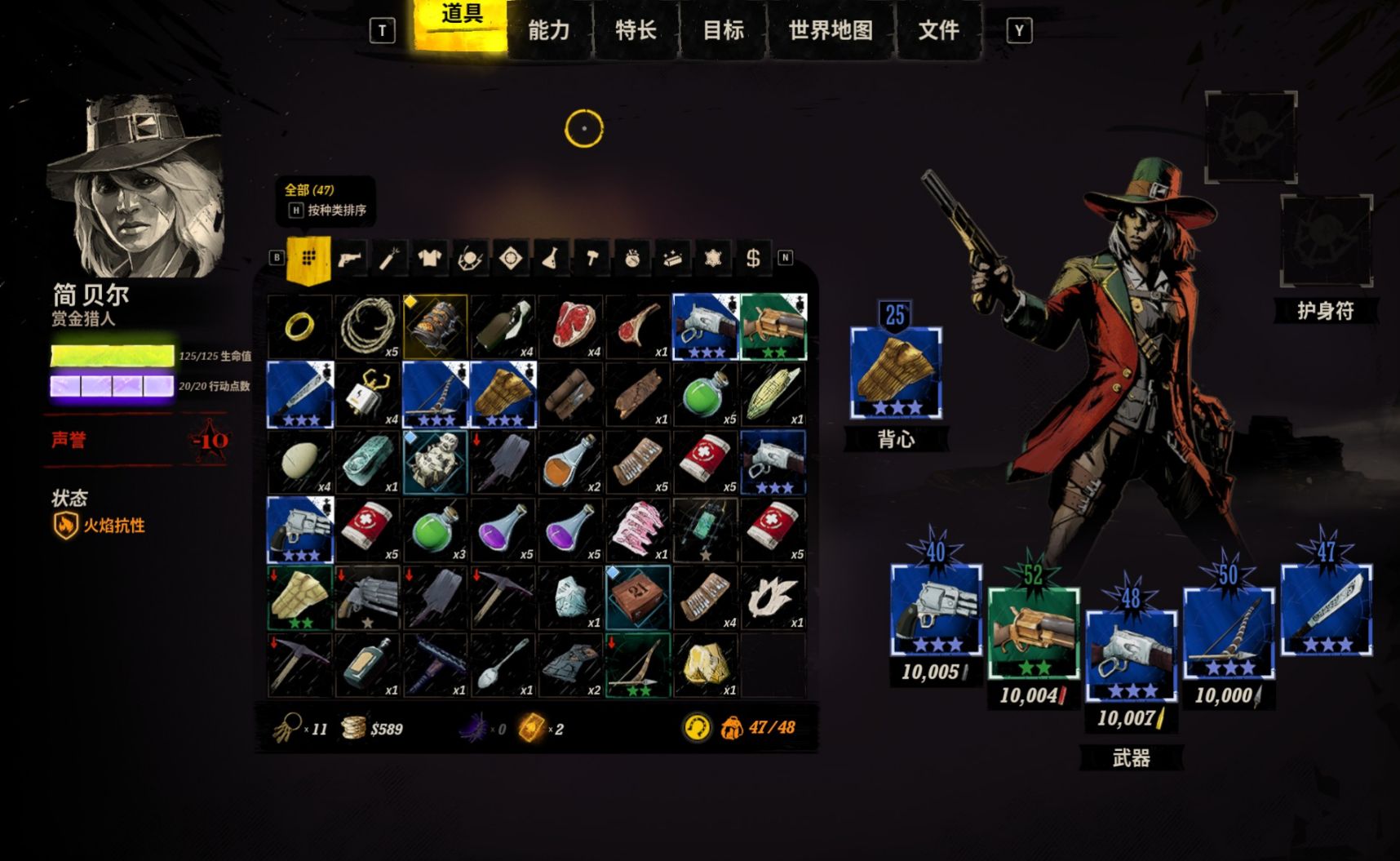 地图上有着大量的收集品,可谓将“捡垃圾”贯穿到底了,包括钱币、弹药、杂货和升级物品。但是,垃圾虽多,但背包太小。虽然将物品可以转移到马匹背包里,但是太麻烦了。马匹一般停留在区域边界,并不是时时跟随着主角。不仅仅是运到马匹身上麻烦,从马匹身上晕倒杂货店出售依然要一趟趟搬运。这就让沉迷捡垃圾的开始取舍,留下一些更值钱的,另一些只能选择性丢弃,简直要了老命。
