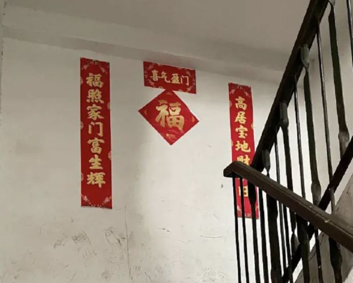 比如早些年在互联网上流传的这张图,如果提取有效信息的话,也就只能提取到对联和福字贴到了墙上。这种充满吉祥寓意的地方,出现在不合常规的地方,便会给人一种诡异的感觉。那么我们便可以有效将其发散一下,基于我们所存在的固有思维,人们一般会把对联和福字贴到自己家中的门上。那么假定这里有「人」看不到的门的话,那么只会是鬼门了。所以就会产生,这里有门且不是人能够通过的门这样一种假想。这便是身边的事情加上我们自己的臆想所造成的给人非比寻常的恐怖的感觉。