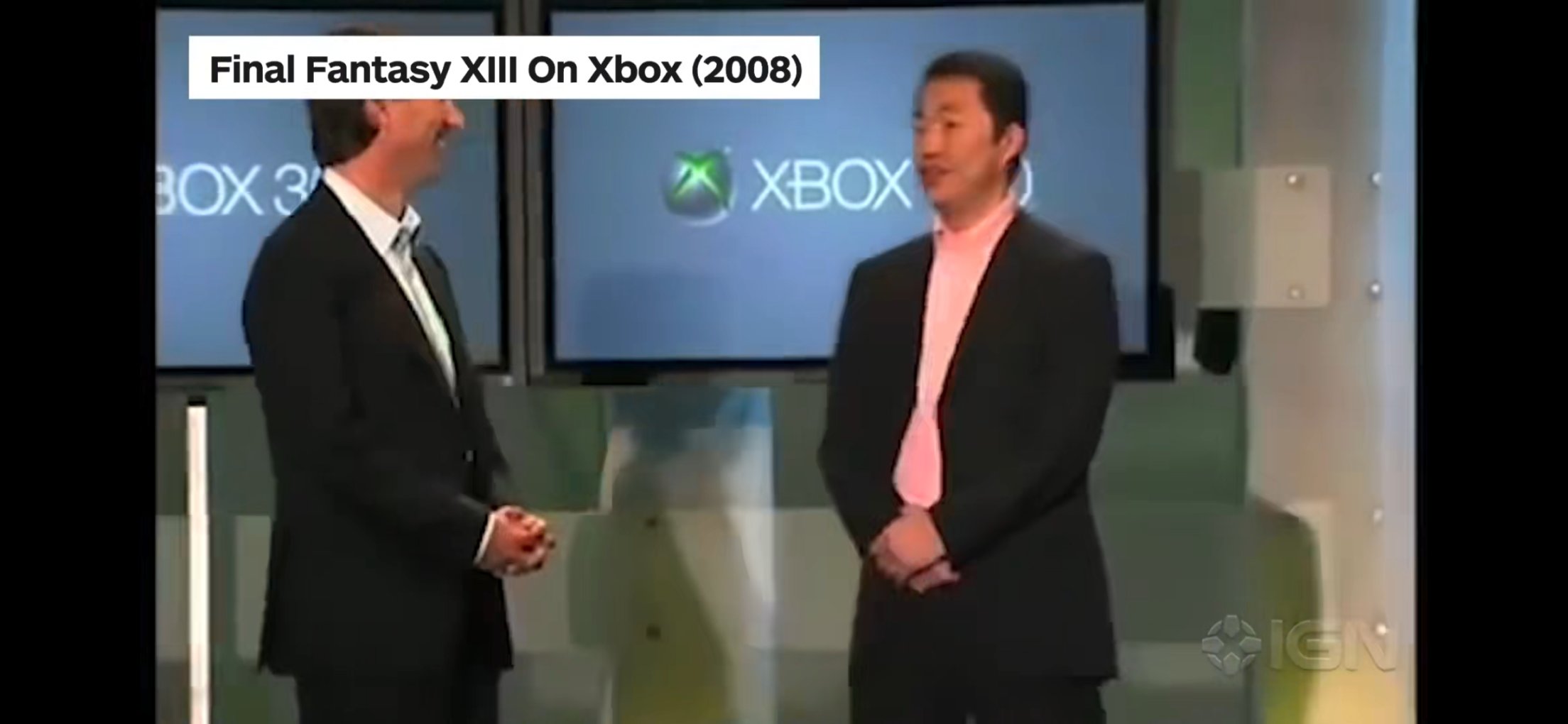 再比如:2008年E3微软发布会经典的“拍肩门”事件,当时SE的负责人上台拍了拍微软负责人的肩膀,并在微软站台宣布《最终幻想13》不再由索尼独占,而是登录XBOX360,引得台下一片哗然与欢呼。从此以后,拍肩膀成为了一个标志性的“叛徒”动作。