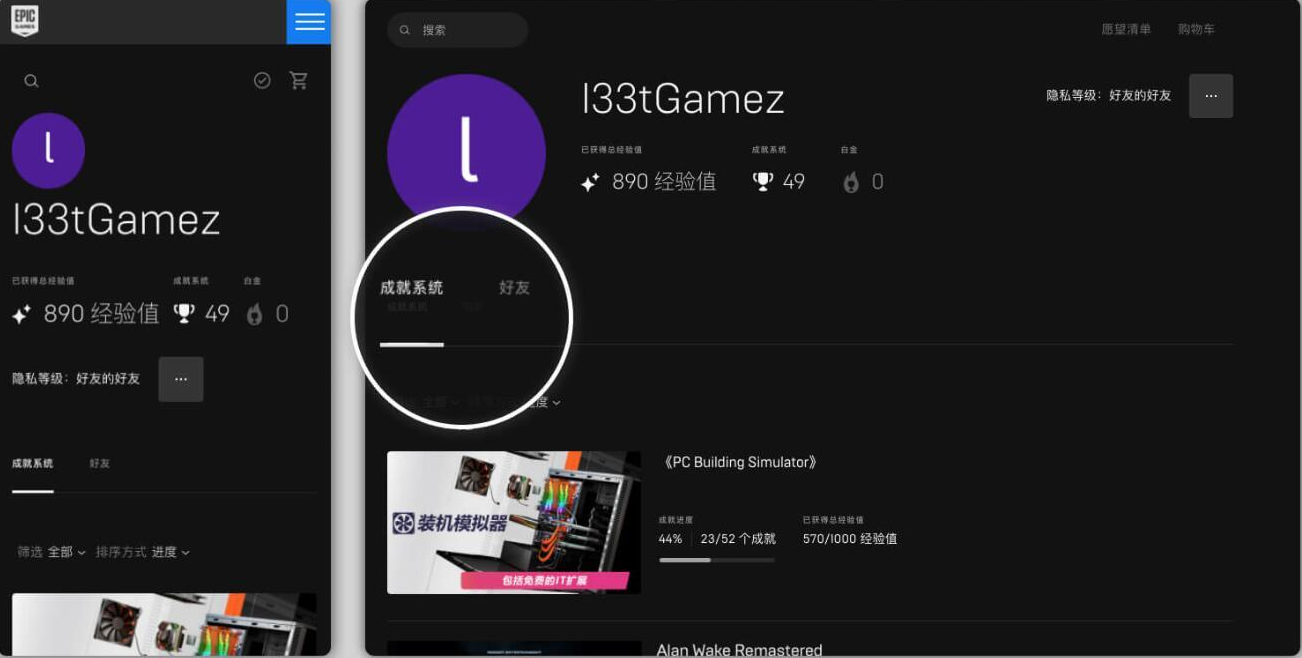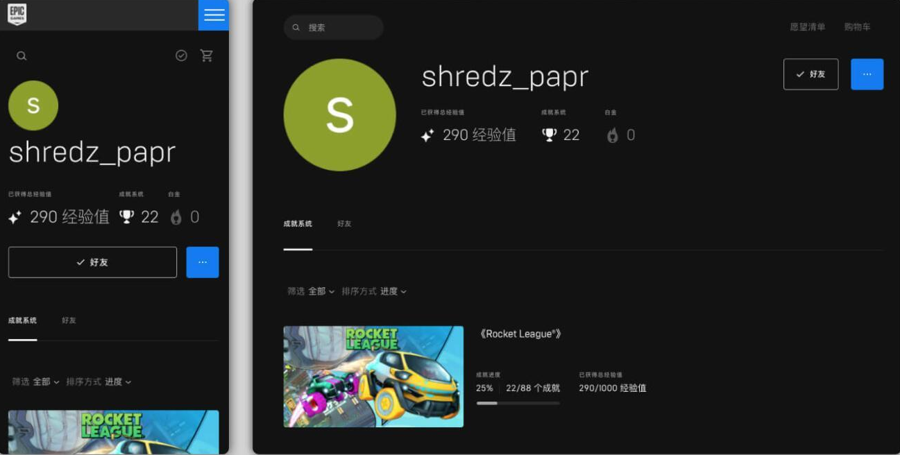 E宝虽然比G胖大方多了,每周都有免费游戏供玩家们白剽,但自家商城确实有许多必要的功能都没有实现。Epic游戏商城今日发布公告确认,“我的成就”功能目前已经上线。据官网介绍,全部用户都会拥有一个显示其用户名首字母的档案图标。访问你的页面的用户将在右上角看到你已解锁的成就数量、已达成白金成就的游戏名称以及你的经验值。
