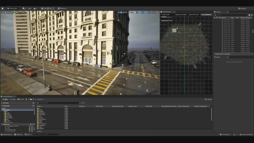 “城市示例”展示了《黑客帝国觉醒:虚幻引擎5体验》是如何使用虚幻引擎5构建城市。在示例中建筑、MetaHuman、载具,所有这些都可以免费下载和使用。