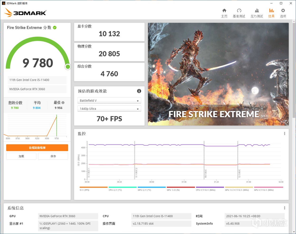 RTX 3060桌面端非公 Fire Strike Extreme显卡分数10132