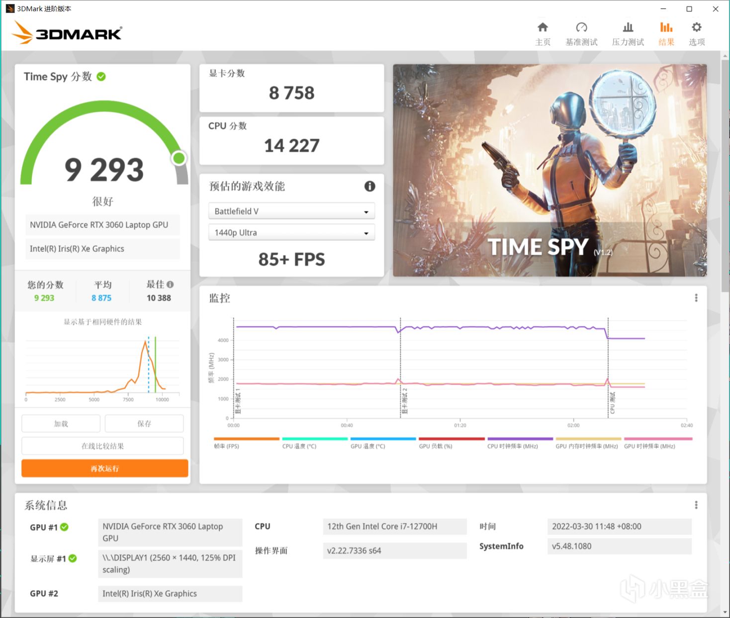 天选3 RTX 3060 Laptop Time Spy显卡分数8758