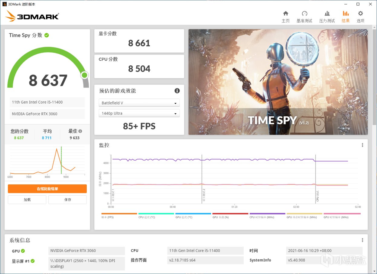 RTX 3060桌面端非公 Time Spy显卡分数8661