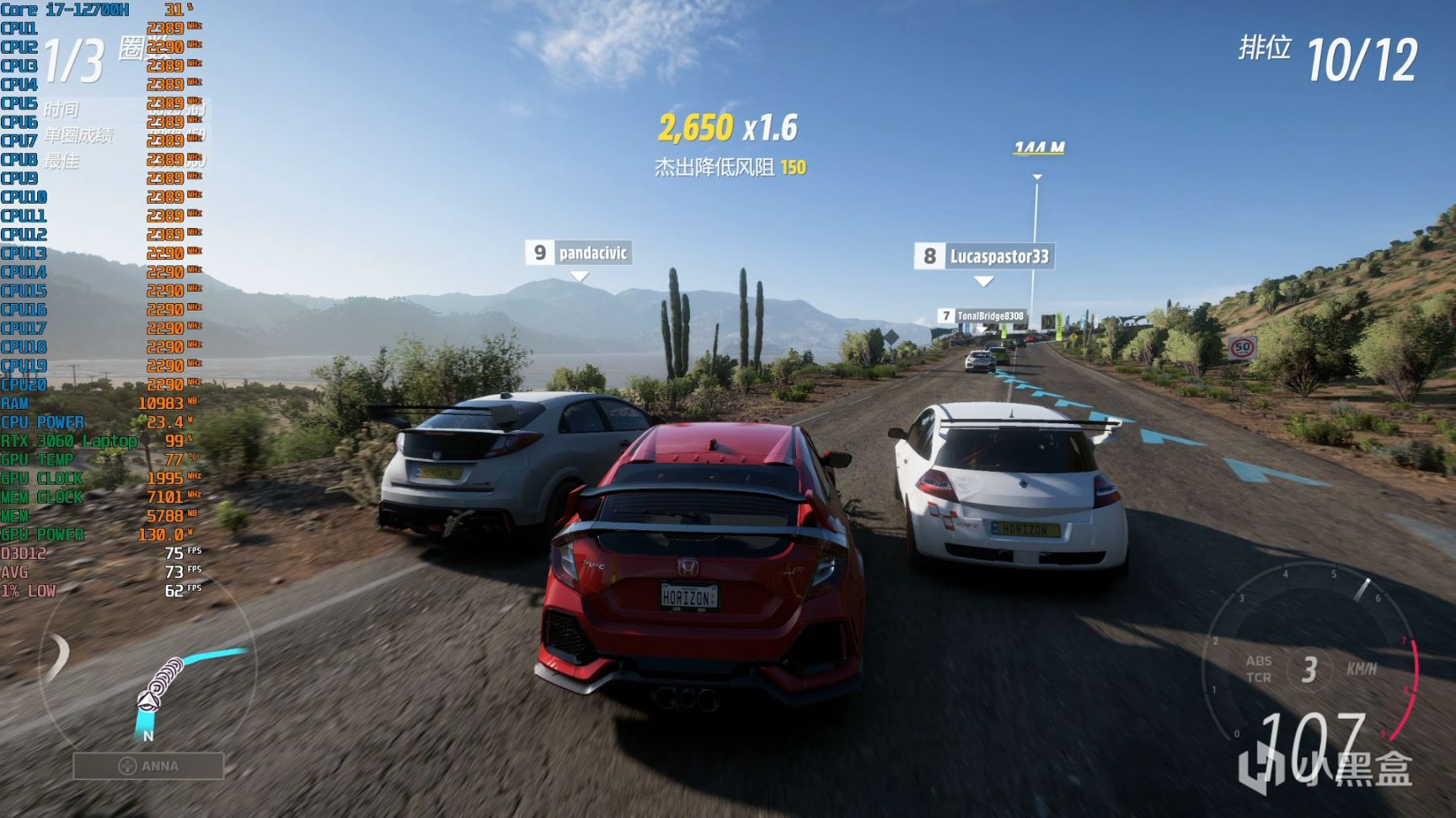 《极限竞速:地平线5》2K预设超高画质,平均帧数73fps