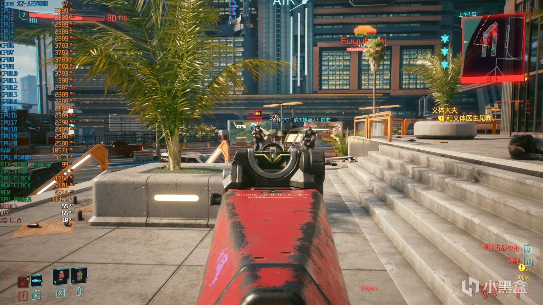 《赛博朋克2077》预设超级画质+光线追踪低,平均帧数65fps