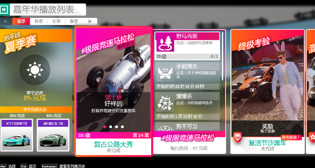 夏季赛进度奖励为50%完成2013款FORMULA DRIFT #777雪佛兰 CORVETTE和80%完成奖励2019款阿斯顿马丁DBS SUPERLEGGERA(还行这两辆)