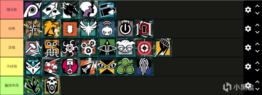 总结:事实上进攻方比起防守方来说强度表要好做不少,而且在彩六在大概Y4还是Y5大改了后坐力之后进攻方我认为除了M762是没有特别难用的枪的。而目前彩六的进攻方在我的观点看来是处于一个相对平衡的状态,基本大部分干员都有自己的用武之地,特别是围绕切墙进攻方可以做的排列组合有非常多种而且效果各不相同,相比起我入坑时期只能EMP+热切组合算是有点百花齐放的意味了。但是除此之外育碧推出的非道具置换或者切墙辅助的新干员比如Osa,Nokk,Zero,他们的技能相对来说强度和用途都不算太可观,这也是我对于育碧将来推出新的进攻方的一点担忧。