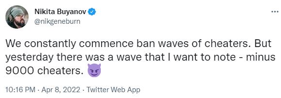 Battlestate Games工作室负责人兼《逃离塔科夫》游戏总监Nikita Buyanov称在近期开启的《逃离塔科夫》封禁潮中有9000名违规玩家被封禁。