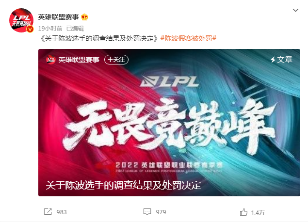 日前,《英雄联盟》赛事官方于4月8日宣布对LGD电子竞技俱乐部陈波选手(ID:Jay)参与假赛和赌博的违规行为作出处罚决定:因其存在影响LPL比赛公平性的不正当行为、并参与非法组织的有关英雄联盟赛事的投注,予以终身禁赛处罚,即刻生效。