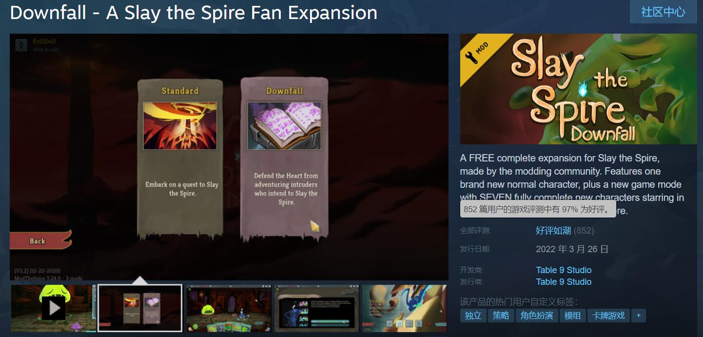 Steam是一个开放性很高的平台社区,玩家可以通过“创意工坊”发布自制内容,其中有一些甚至能拥有自己的独立商店页面。最近就有一款《杀戮尖塔》大型扩展mod在Steam上发布,拥有《杀戮尖塔》游戏本体的玩家都能免费获得,而且它自带中文;目前该mod的好评率高达97%,“好评如潮”。