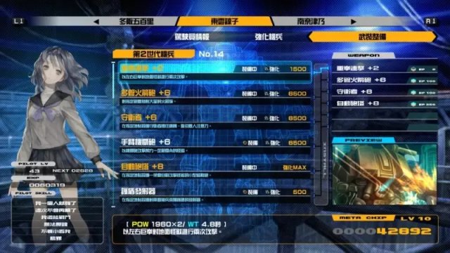 如果你是曾经玩过PS4版本的玩家,请注意本次NS版本对于战斗的平衡性有所调整,其中影响最大的就是PS4版本非常好用的哨戒炮在NS版本有一定削弱,当初本作被戏称为《东云炮台防卫圈》的尴尬状况如今已不复存在。作为补偿,NS版本每位主角都增加了两种兵装,基本上补强了每台机兵原本的不足之处,比如原本主打地面战的比治山被追加了针对飞行BOSS的对空碎断刃,这些强化兵装让玩家的排兵布阵更为自由和轻松。