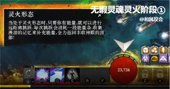 淑雯80%血和40%血时平台上出现绿圈,站上去后会被传送到平台最下面,同时变为灵火形态,耐力槽变为6格,玩家需要按空格键一步步跳上平台,每跳一次消耗一格耐力,途中吃球可以让耐力全满,登上平台后使用3技能恢复人形,即可完成成就。