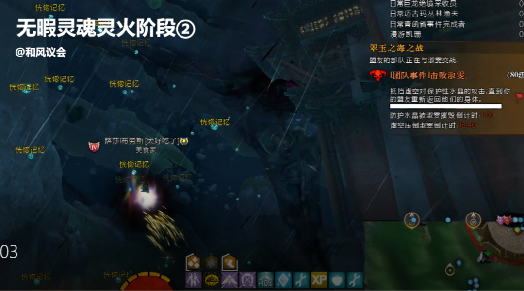 突破护送阶段结束后,在丰收建筑群传送点[&BKAMAAA=]会刷新前置阶段的最后一个事件:使用晶化的巨龙魔法来充能对应的炫彩水晶。我们需要在对应区域击杀小怪,然后捡起地上的晶化魔法,扔向对应的炫彩水晶,为每一块水晶至少充能一次即可完成成就。